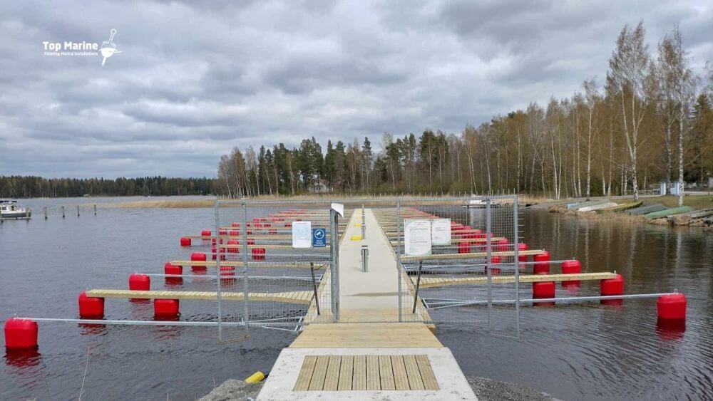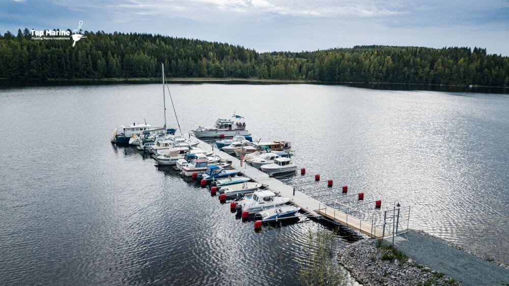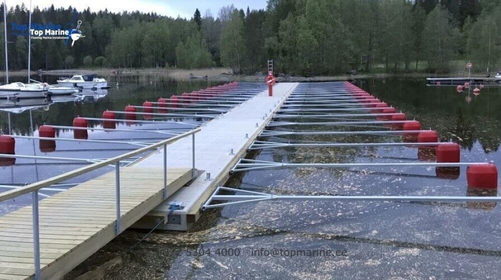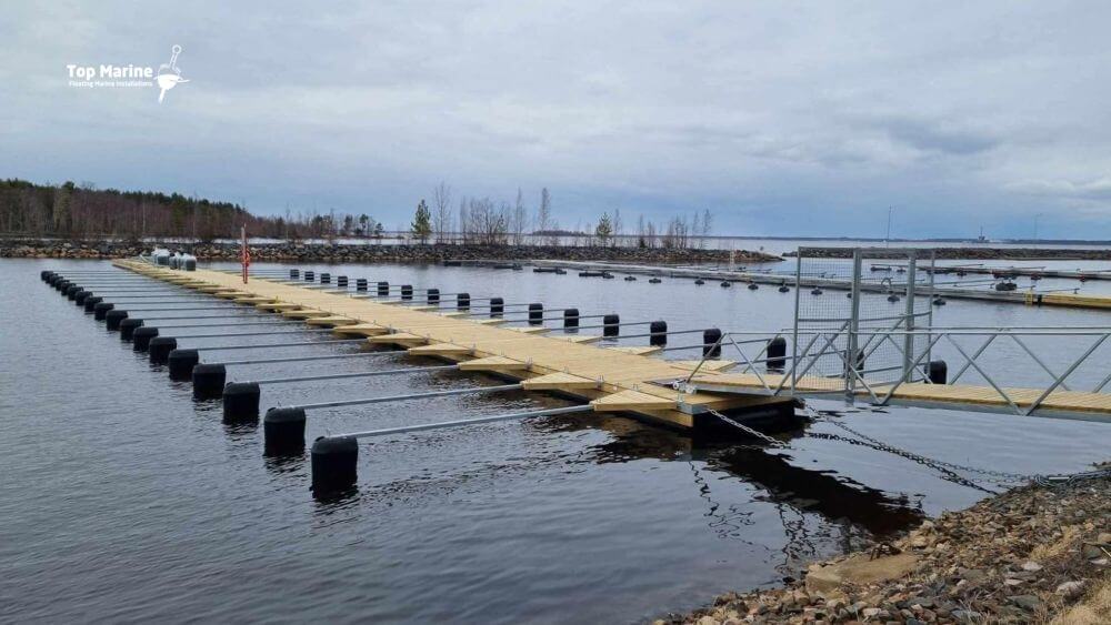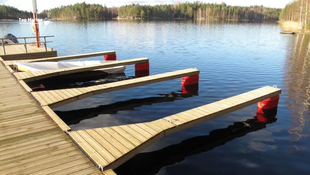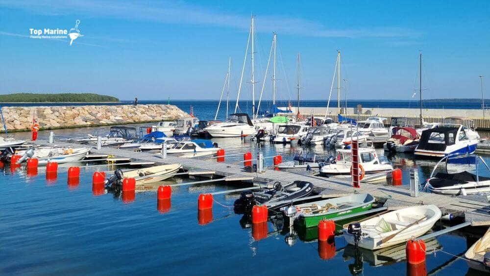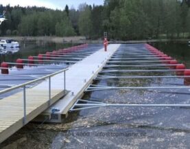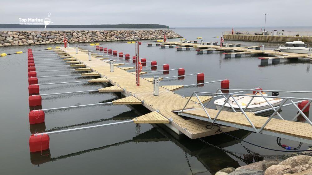 Jako wyposażenie dodatkowe można zamówić drewniane poszycie o szerokości 300 mm i odbojnice. Jeśli budujesz nową przystań jachtową warto rozważyć system szyny w nowym pomoście. Zapewnia to możliwość regulacji szerokości przestrzeni cumowniczej, jest to świetne rozwiązanie ponieważ w zależności od szerokości jachtów możesz optymalizować miejsca cumownicze.