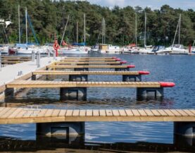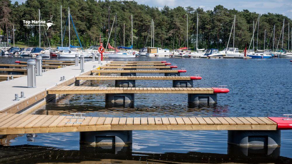 Odnogi cumownicze można wyposażyć w pierścienie cumownicze lub polery typu T, które ułatwiają cumowanie jachtu.